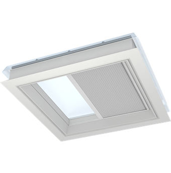 The VELUX Anti-Heat Blind for Flat Roof Windows (CVP & CFP) provides effective external heat protection while maintaining natural daylight and outside views. Designed specifically for VELUX clear polycarbonate dome and curved glass flat roof windows, it reduces solar heat before it enters your room.